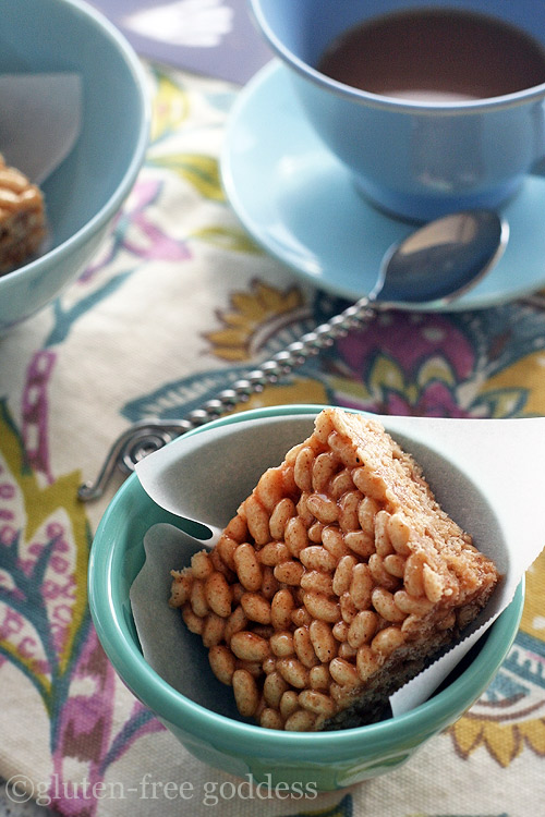As a celiac child growing up in the 70's, "rice krispie treats" as they were dubbed, were a staple in my diet (we must have ignored the malt flavouring... or perhaps it wasn't there?). They got me through a lot of bake sales at school. I aim to avoid much of what you do in my diet, and the fact that these are still so EASY means they are on my list for this week! (I'd better invite some friends over for tea).